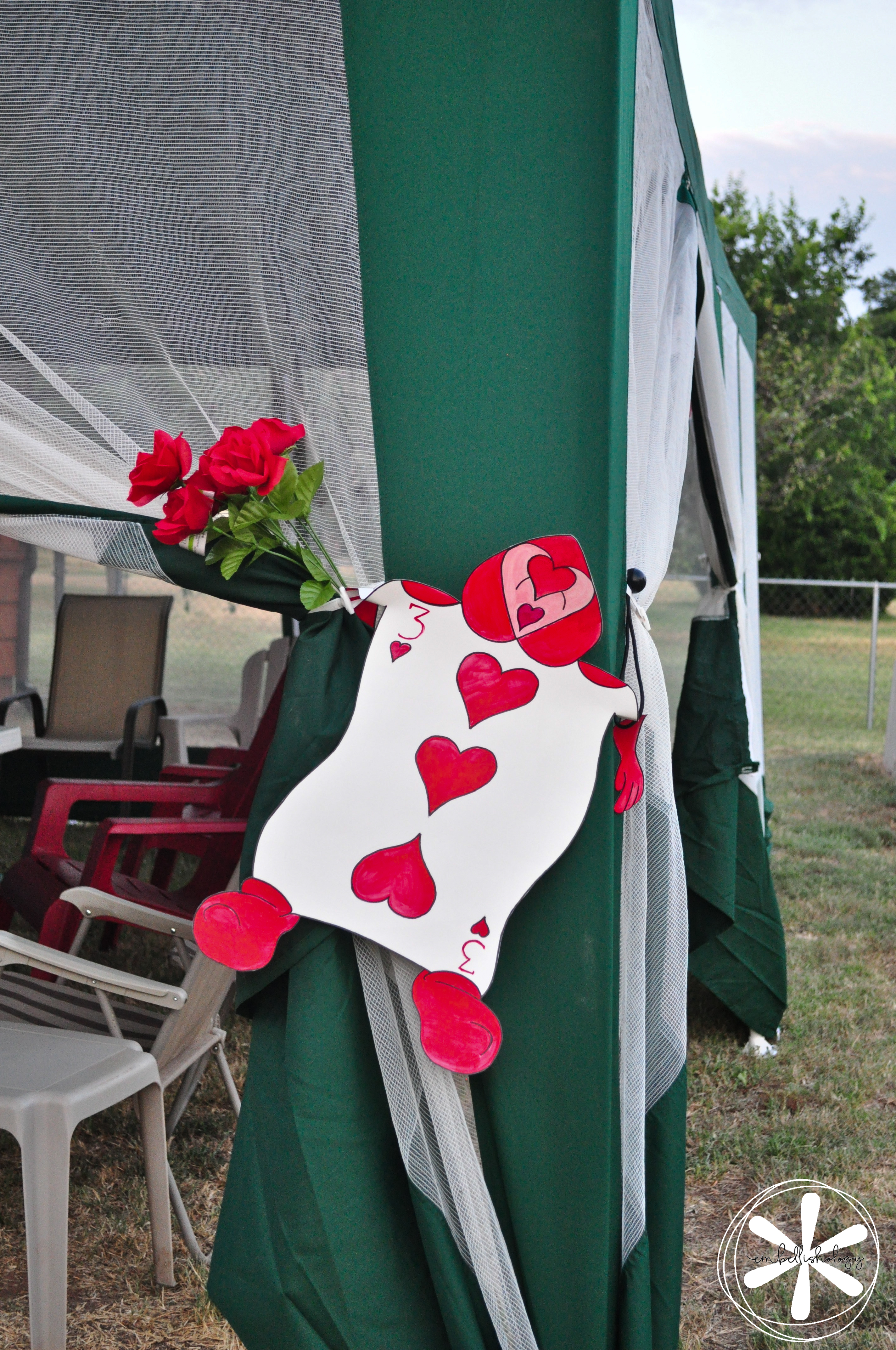 The Queen’s court was in the backyard. There was a tent and tables for anyone who wanted to eat outside and we had croquet set up with flamingo mallets and hedgehogs for balls.